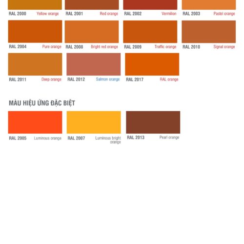 Bảng màu sơn epoxy RAL màu Cam