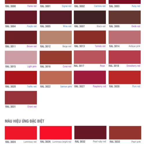 Bảng màu sơn epoxy RAL màu Đỏ