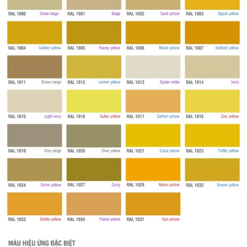 Bảng màu sơn epoxy RAL nhóm màu Vàng