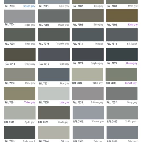 Bảng màu sơn epoxy RAL nhóm màu Xám