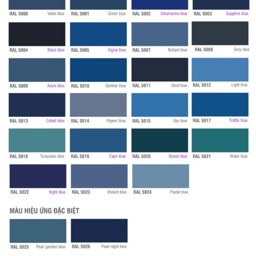 Bảng màu sơn epoxy RAL nhóm màu Xanh dương